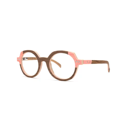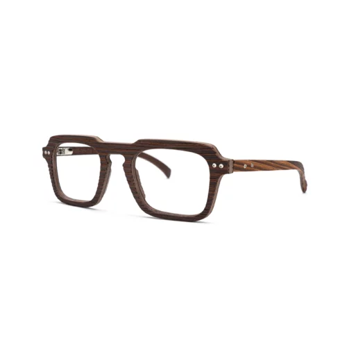 Nous utilisons des bois denses tels que l’érable ou le hêtre. Nous moulons 9 feuilles de bois en croisant le sens des fibres avec une colle haute performance, garantissant ainsi souplesse et tenue dans le temps. Cela permet de monter des verres, même avec de fortes corrections.