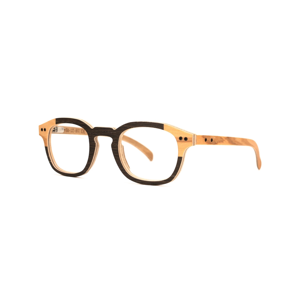 Nous utilisons des bois denses tels que l’érable ou le hêtre. Nous moulons 9 feuilles de bois en croisant le sens des fibres avec une colle haute performance, garantissant ainsi souplesse et tenue dans le temps. Cela permet de monter des verres, même avec de fortes corrections.