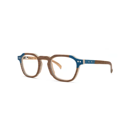 Nous utilisons des bois denses tels que l’érable ou le hêtre. Nous moulons 9 feuilles de bois en croisant le sens des fibres avec une colle haute performance, garantissant ainsi souplesse et tenue dans le temps. Cela permet de monter des verres, même avec de fortes corrections.