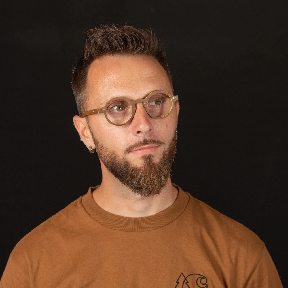 Nous utilisons des bois denses tels que l’érable ou le hêtre. Nous moulons 9 feuilles de bois en croisant le sens des fibres avec une colle haute performance, garantissant ainsi souplesse et tenue dans le temps. Cela permet de monter des verres, même avec de fortes corrections.