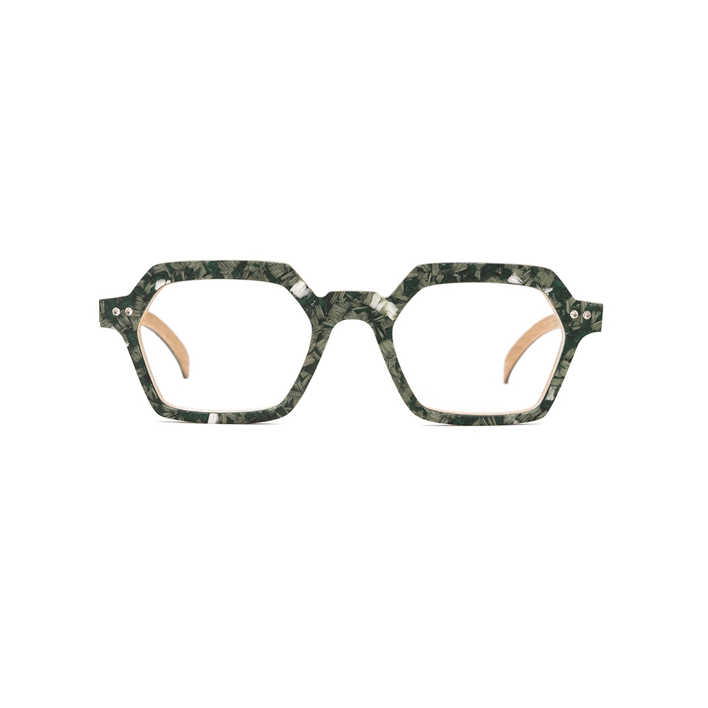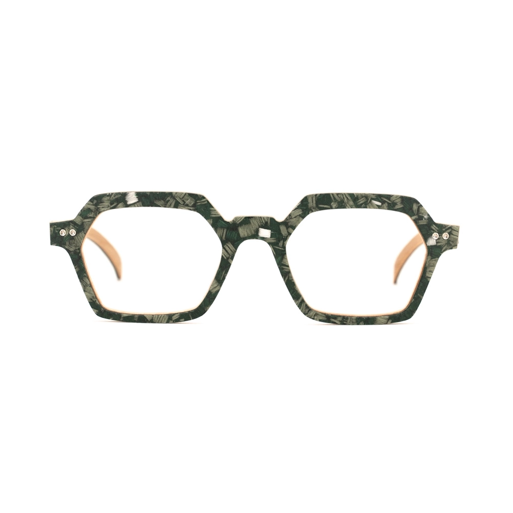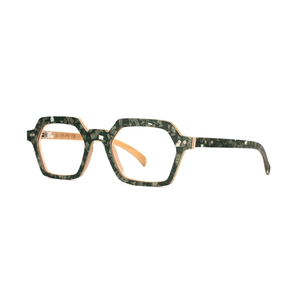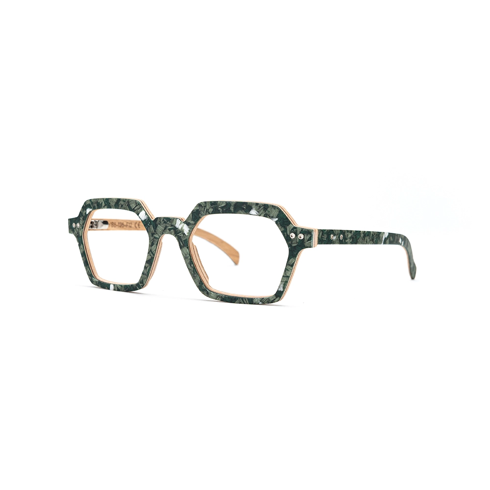 Nous utilisons des bois denses tels que l’érable ou le hêtre. Nous moulons 9 feuilles de bois en croisant le sens des fibres avec une colle haute performance, garantissant ainsi souplesse et tenue dans le temps. Cela permet de monter des verres, même avec de fortes corrections.