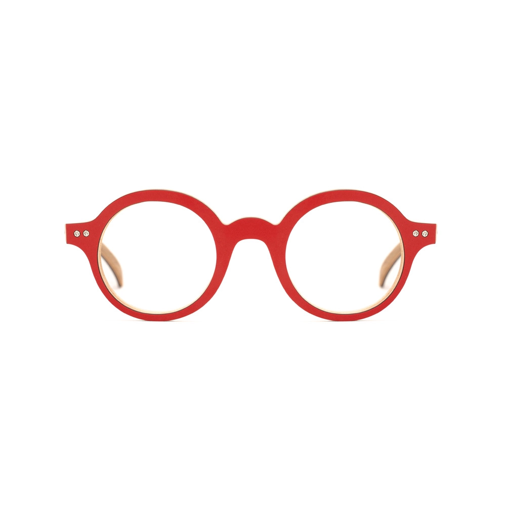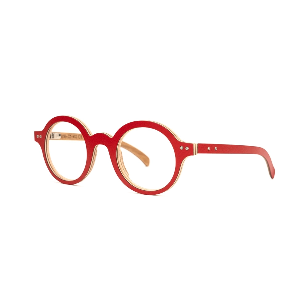 Nous utilisons des bois denses tels que l’érable ou le hêtre. Nous moulons 9 feuilles de bois en croisant le sens des fibres avec une colle haute performance, garantissant ainsi souplesse et tenue dans le temps. Cela permet de monter des verres, même avec de fortes corrections.