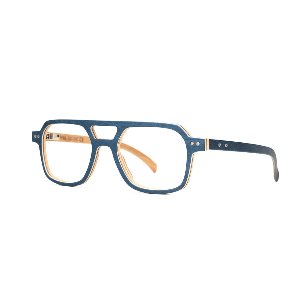 Nous utilisons des bois denses tels que l’érable ou le hêtre. Nous moulons 9 feuilles de bois en croisant le sens des fibres avec une colle haute performance, garantissant ainsi souplesse et tenue dans le temps. Cela permet de monter des verres, même avec de fortes corrections.