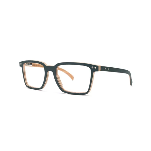 Nous utilisons des bois denses tels que l’érable ou le hêtre. Nous moulons 9 feuilles de bois en croisant le sens des fibres avec une colle haute performance, garantissant ainsi souplesse et tenue dans le temps. Cela permet de monter des verres, même avec de fortes corrections.