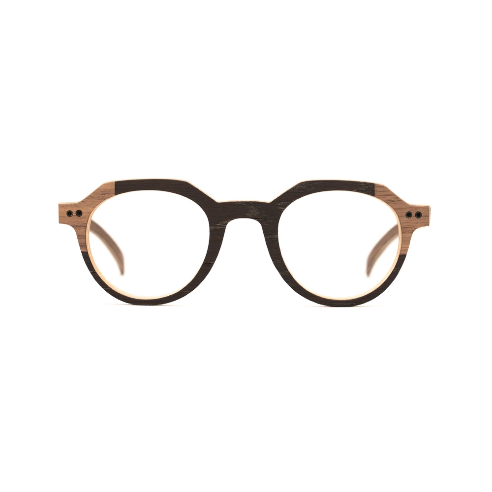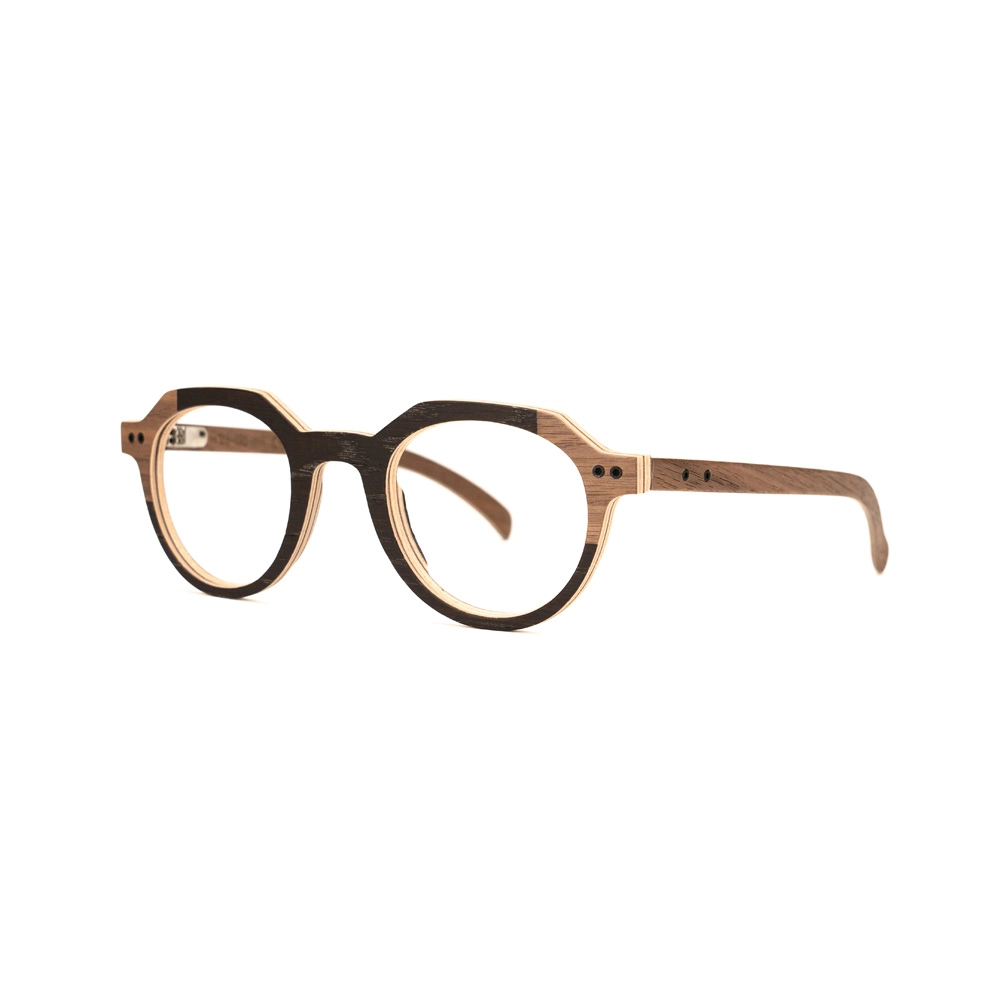 Nous utilisons des bois denses tels que l’érable ou le hêtre. Nous moulons 9 feuilles de bois en croisant le sens des fibres avec une colle haute performance, garantissant ainsi souplesse et tenue dans le temps. Cela permet de monter des verres, même avec de fortes corrections.