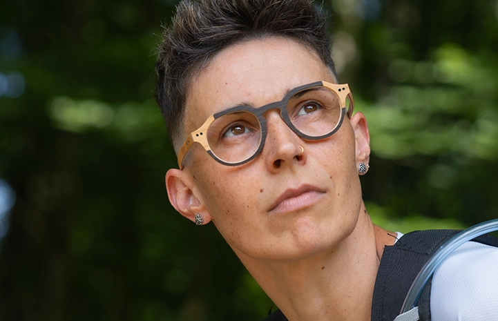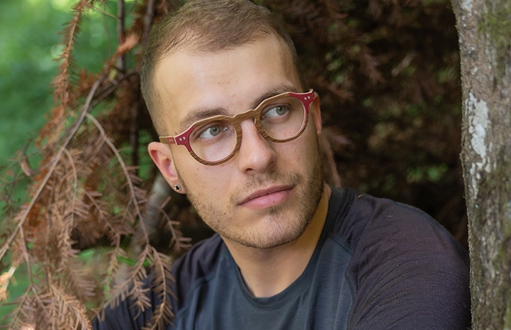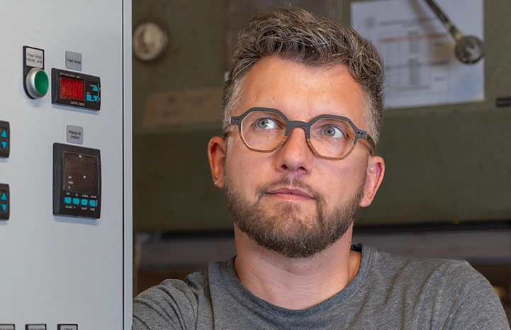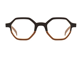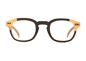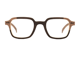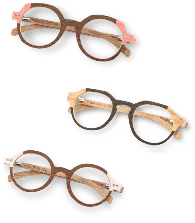 Naturelle et colorée, il s’agit d’une monture deux tons alliant le bois à une marqueterie de couleur.