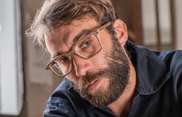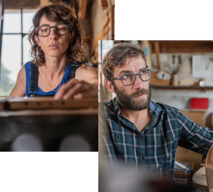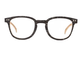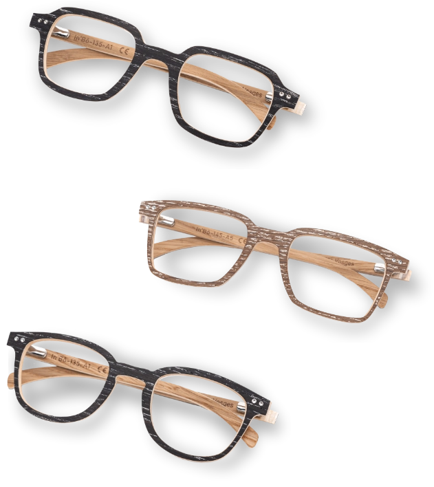 Homme et femme qui portent des lunettes en bois cérusé noires